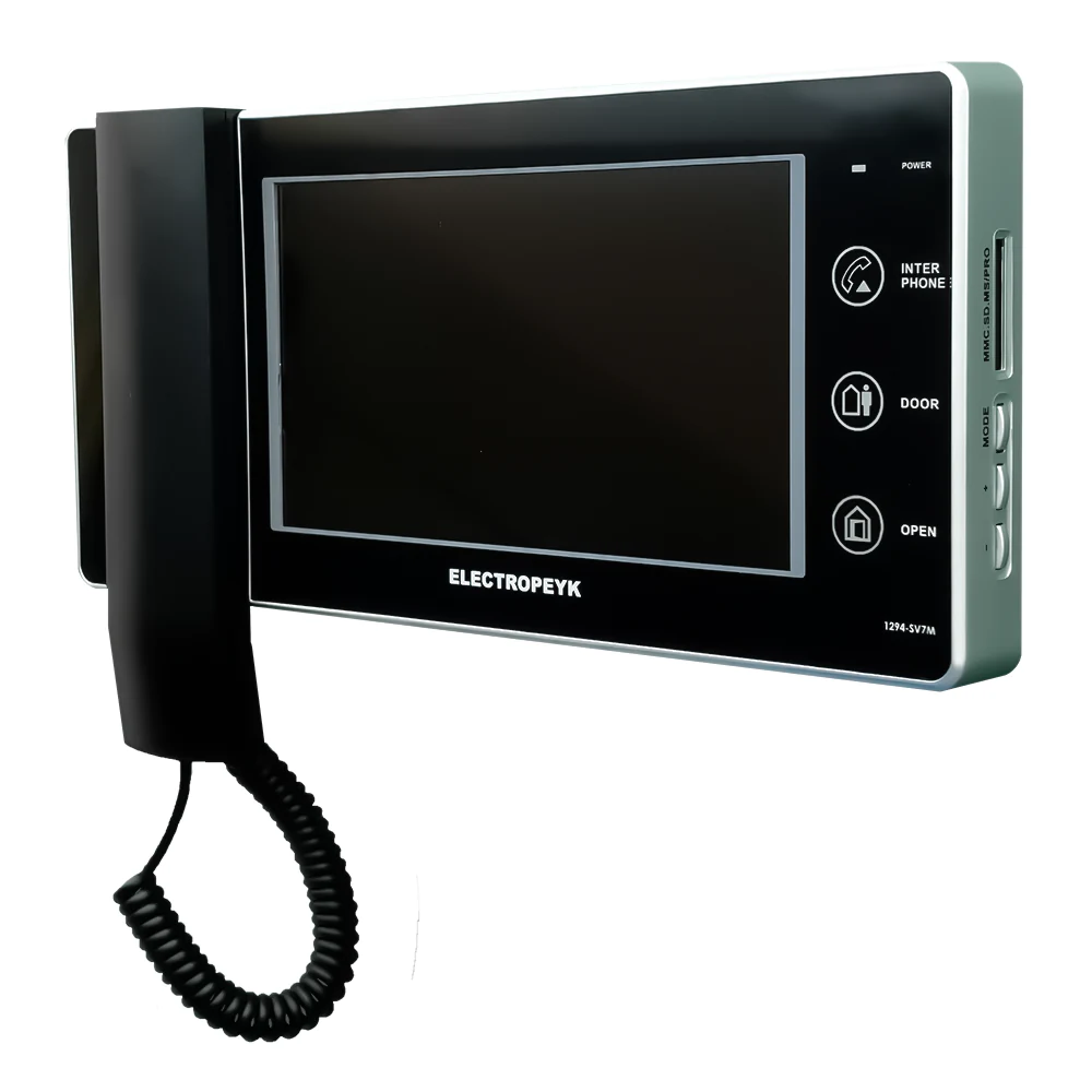 اندازه صفحه نمایش۷اینچرزولیشن تصویر۴۸۰×۸۰۰اتصال به صفحه۲ صفحهاتصال به دوربین امنیتی۲ دوربین انالوگعملکردکلید لمسیارتباط داخلییک به یکذخیره عکس و فیلم و صدادارداتصال کارت حافظهداردرنگسفید ومشکی